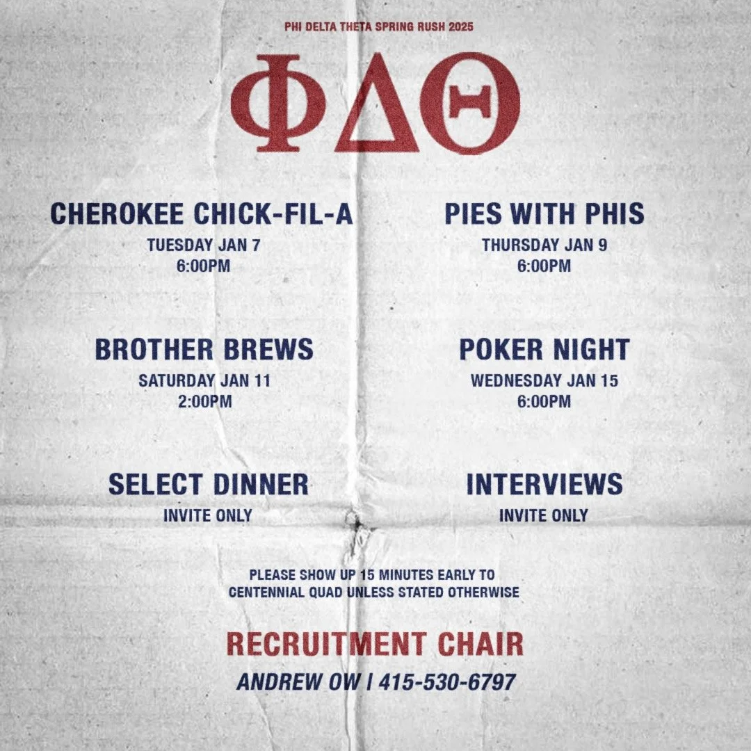 Phikeia must achieve a minimum GPA of 3.0 to be initiated into Phi Delta Theta. Additionally, our chapter’s scholarship chairman provides resources such as study hours and tutoring programs to support our members. We take academics seriously and are dedicated to helping both our Brothers and Phikeia succeed, both inside and outside the classroom.
